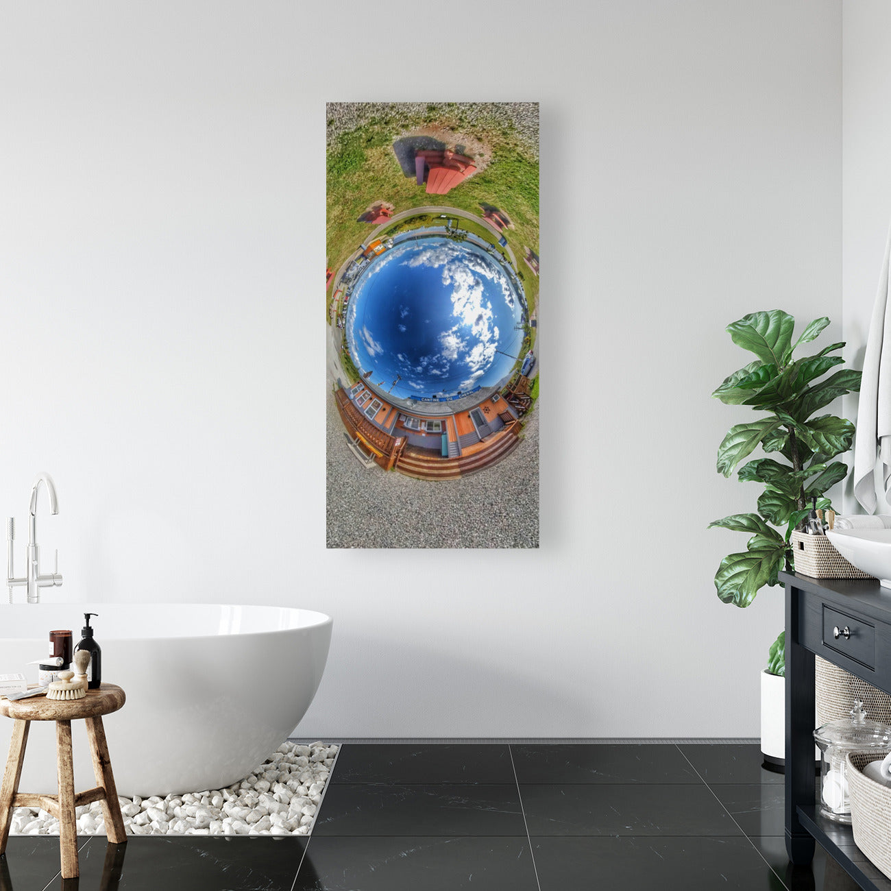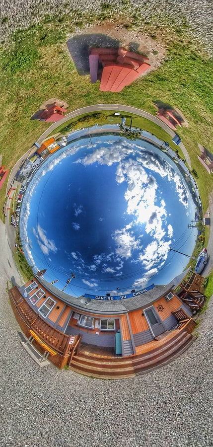 Chaque image de la collection Paysages urbains de Montréal a été créée à l'aide d'une caméra 360° et transformée grâce à des techniques de retouche numérique avancées. Elles ne sont pas générées par l'IA ; elles sont capturées dans le monde réel, puis réimaginées par distorsion, inversion et rééquilibrage de la lumière pour offrir une vue surréaliste, mais fidèle à l'environnement de Montréal.