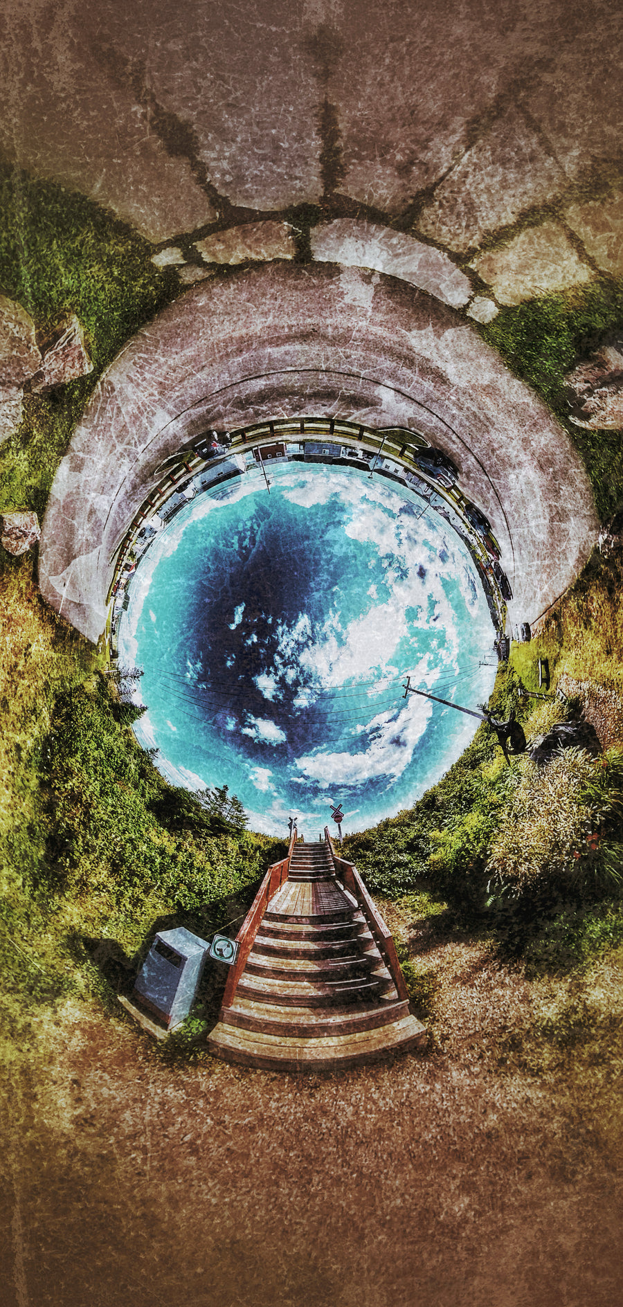Avec son reflet circulaire du ciel et ses textures superposées, l'image évoque la sensation de traverser un portail spatial – non seulement un passage entre terre et mer, mais entre deux dimensions. L'une des œuvres préférées de l'artiste.