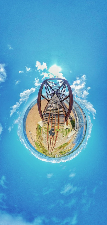 Chaque image de la collection Paysages urbains de Montréal a été créée à l'aide d'une caméra 360° et transformée grâce à des techniques de retouche numérique avancées. Elles ne sont pas générées par l'IA ; elles sont capturées dans le monde réel, puis réimaginées par distorsion, inversion et rééquilibrage de la lumière pour offrir une vue surréaliste, mais fidèle à l'environnement de Montréal.